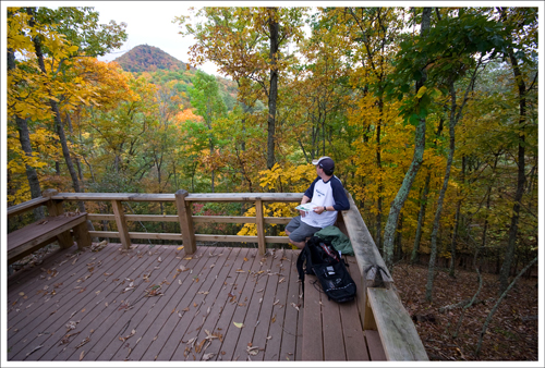 The colors of the fall leaves were really quite gorgeous in the park, so we decided walk around a bit. Of course, the hiking enthusiasts that we are, we decided to try the hike up Molly’s Knob.
