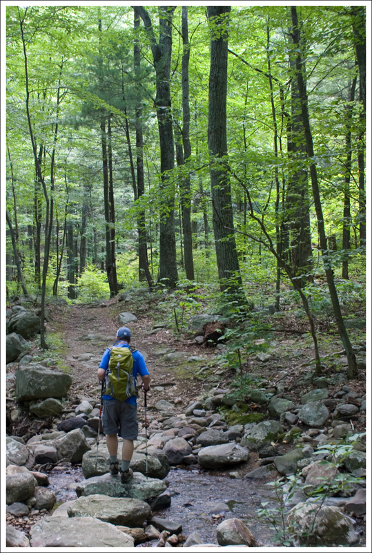 This time, the hike was a lot more fun!  It was still a long, steep downhill –  but I really enjoyed marveling at the huge variety of mushrooms and fungi growing along the trail.  I don’t know if there is a name for people who collect/catalog fungus, but if such people exist – this is the trail for them.  We also happened to notice a beautiful backcountry campsite at the bottom of the hollow, where the trail leveled out.  Along with easy access to water, there was a wide, flat expanse under the shade of the trees.  The forest floor in this area was open with very little undergrowth.  There were also several huge piles of rocks – maybe from old stone walls or foundations in the area.  It was a great place to take a break and have a snack.