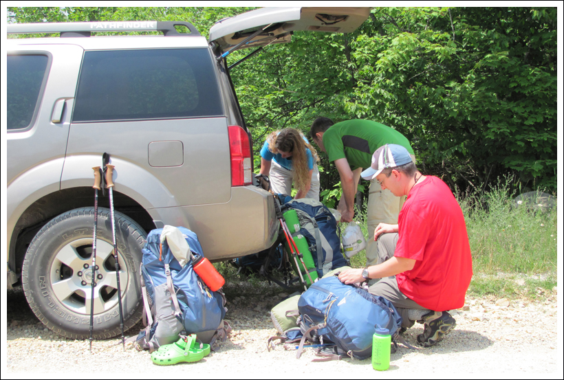 Suzanne and Anthony drove down to our house on Friday night so we would have time to go through all our gear before getting an early(ish) start on Saturday morning.  We spent most of the evening fiddling with our packs, splitting up shared gear and contemplating how many Clif bars we truly needed to survive our expedition. That evening, it looked like an REI store exploded in our basement.  We laughed about how much stuff we had to pack for just one night of camping.  We ran through our checklist to make sure we had everything – stove, tent, sleeping bag, clothes, food, emergency kit, etc.