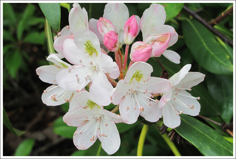 We visited the area at a truly beautiful time of year.  The Rosebay Rhododendrons were just starting to bloom.  The mountain laurel was a bit past peak, but there were still plenty of flowers to enjoy.  And best of all WILD BLUEBERRIES were everywhere along the cliffs!  Suzanne and Christine were significantly more excited about the berries than the guys and spent a lot of time searching for ripe berries tucked into the bushes.