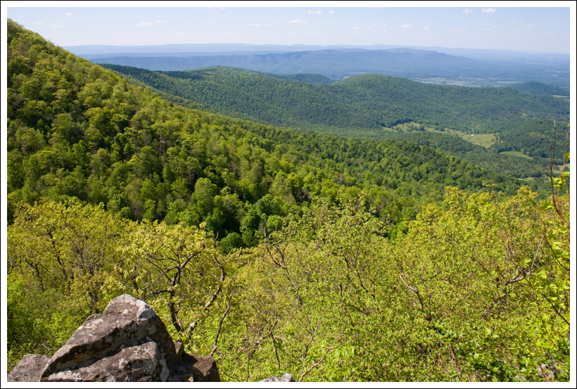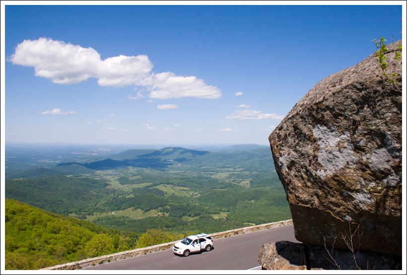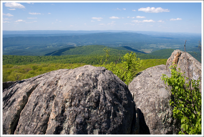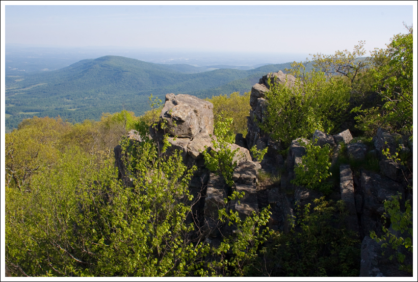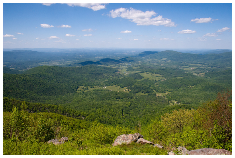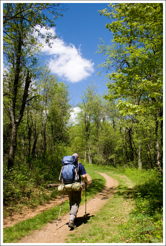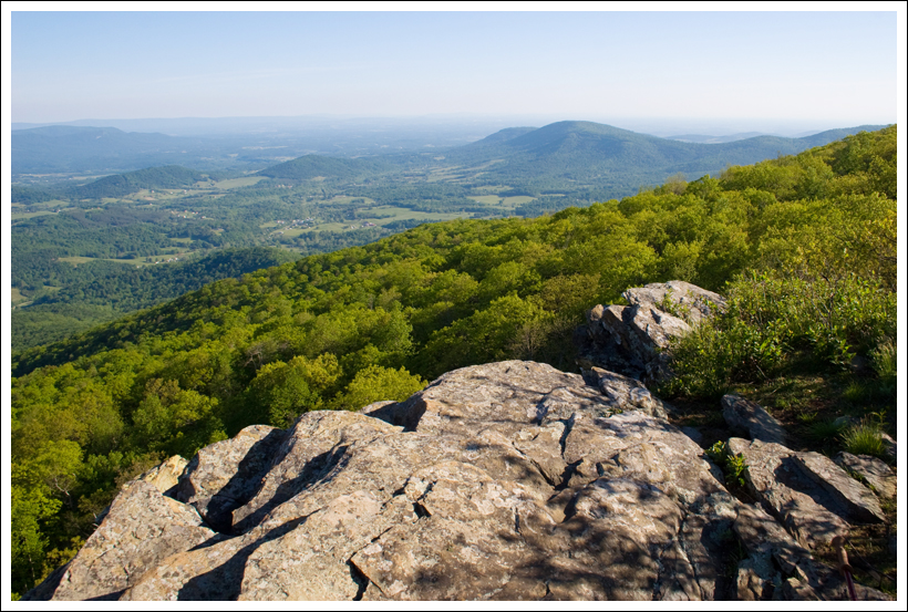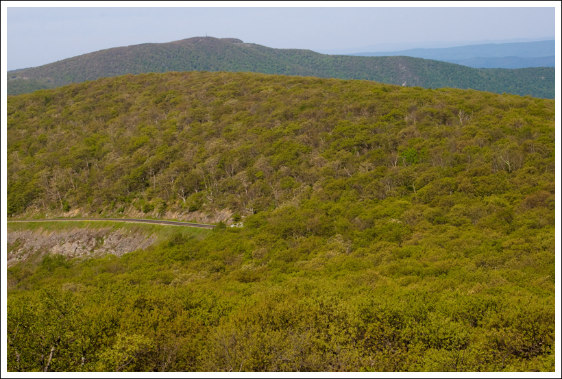 We finally started off on our hike around 1:30PM. We strapped on our 30 lb. packs on to our backs and started climbing up the hill. While we had been hearing the loud screams of the seventeen-year cicadas near our house, we were pleasantly surprised to hear they were not out in Shenandoah National Park. We stopped at a few points on the uphill climb to take in the views from Hogback Mountain. One nice thing about this hike is that the views were mostly on the uphill climbs, so it gives you a reason to take off your heavy pack and enjoy the scenery. A couple of thru-hikers we had seen at Elkwallow passed us near the hang glider launch. We’re always amazed at how fast they hike. I guess hiking every day has its pay-offs!