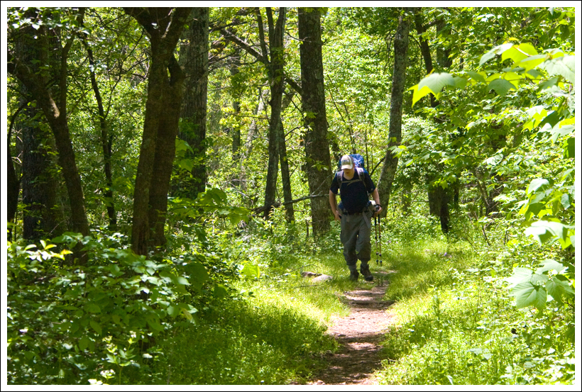 The trail was so beautiful and lush and green! Even when there wasn’t a view to enjoy, the hike itself was so lovely. The climbs were never too hard and the descents were never too steep. We crossed Skyline Drive several times. We saw lots of dayhikers… two of them were even dressed in their ‘Sunday Best’ clothing. They were walking south along the trail, not in the vicinity of any views or special attractions. Neither of them looked in the least bit happy and both of them looked hot and uncomfortable. I see people like that and wonder if this hike was a spontaneous decision. I wonder if they know where they’re going, or if they just set out on a trail thinking ‘Hmmm… if I walk on a trail, eventually I’ll see something!’