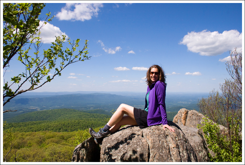 We made it back to our car at Jenkins Gap around 10:30 or so. We had plans to meet my parents at Skyland for a Mother’s Day lunch at noon, so I brushed my hair and changed into my less-dirty clothes. We had plenty of time to kill, so we stopped by the Elkwallow wayside for more snacks and drinks. When we got to Skyland, it wasn’t even 11:30, so we relaxed in the lobby until they arrived. We had a nice lunch together and then headed home. It was a fun trip, and I can’t believe we only have several more miles of Appalachian Trail to hike in Shenandoah!