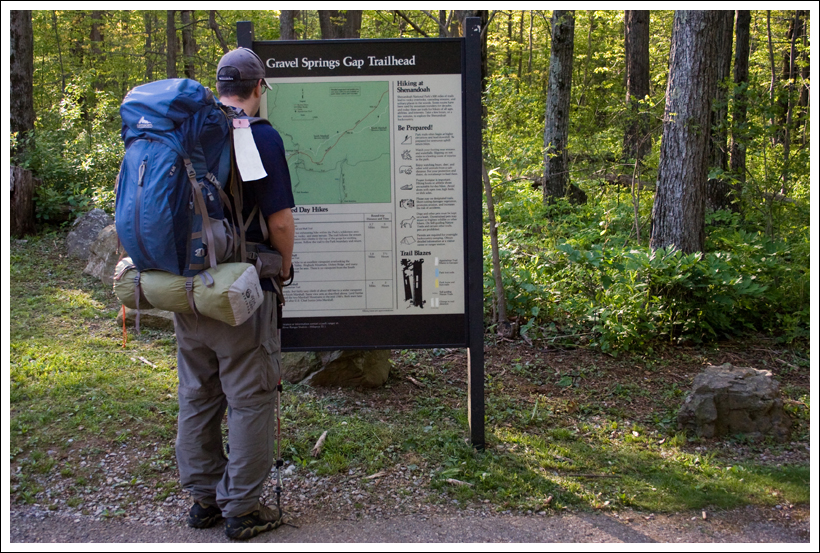 It took us a while to get our act together to make sure we were ready for the trip. We started loading our packs, made sure we had instructions for our dog sitter, and picked up some lunch along the way from Subway. We drove up to drop a car off at the Jenkins Gap parking lot and then made our way back down to the Elkwallow Wayside. We ate our lunch outside and saw a few thru-hikers that we wondered if we would see later that evening. Christine was really cold sitting in the wind outside the wayside. Her legs were covered with goosebumps and she kept pulling her jacket tighter and tighter around her ribs. She told me that she was really worried about the cooler temperatures, and hoped she would warm up once we started hiking.