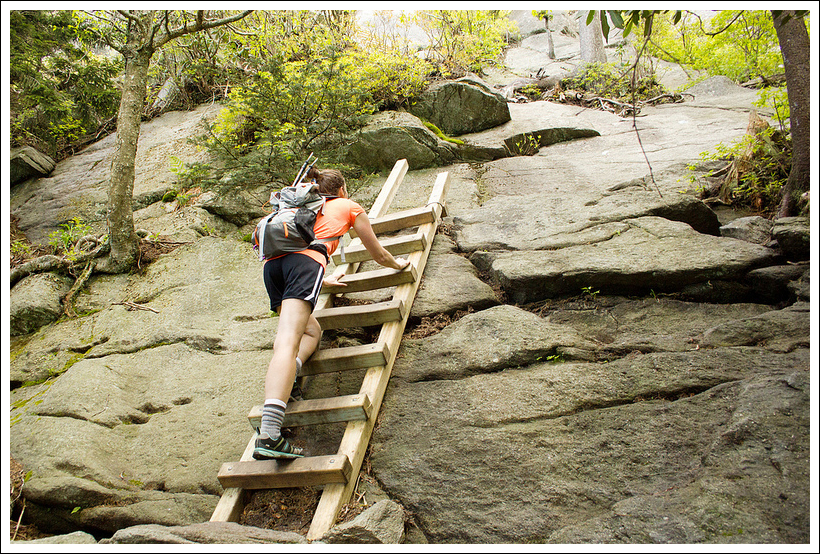 Enjoying Views Near the Bridge Christine Hikes the Grandfather Trail Climbing Ladders