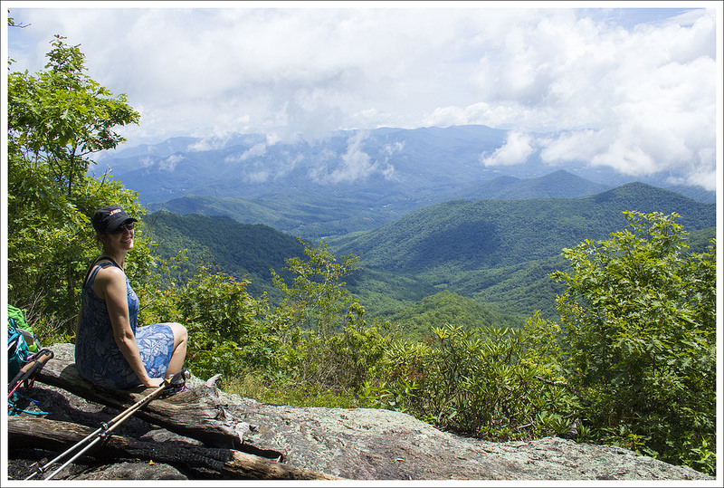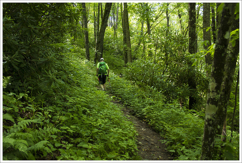 After the Mt. Rogers junction, the trail descends steeply over rocky terrain until you reach Deep Gap at 6 miles. We saw dozens and dozens of northbound thruhikers coming the opposite direction as we descended from Grayson Highlands. More than a few mentioned that they were not enjoying the big climb and asked if the scenery ahead was as amazing as reputed. We assured everyone that the big climb was totally worth the payoff at the summit.