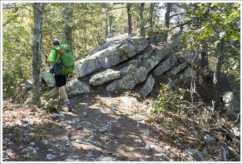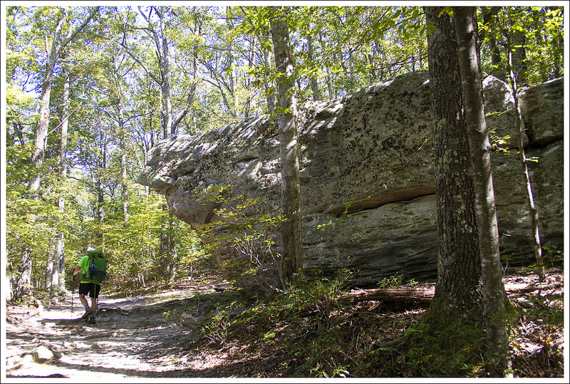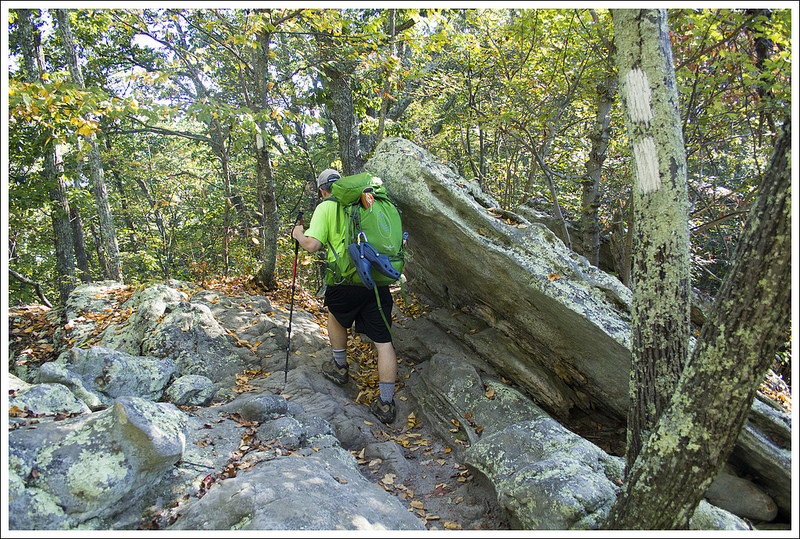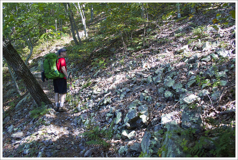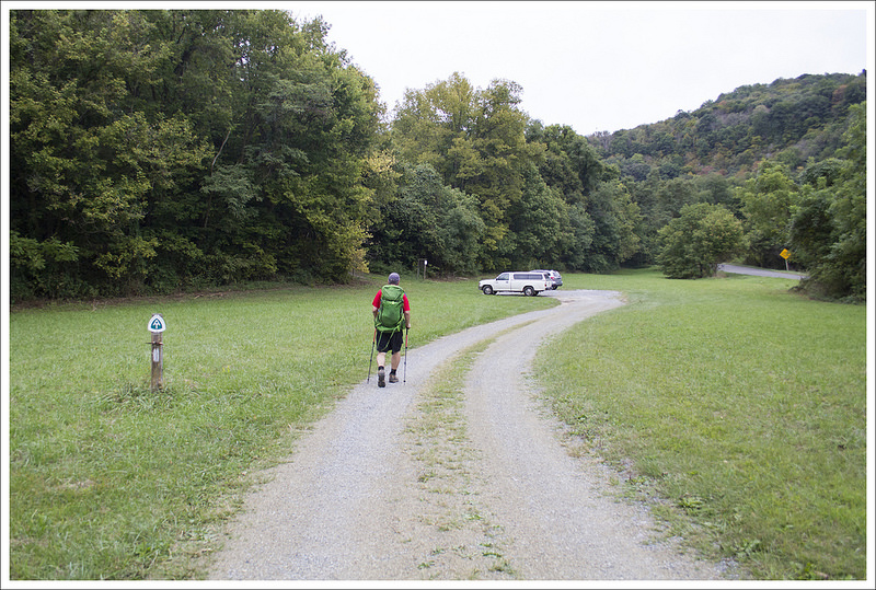 After crossing the road, we had a one mile gradual uphill climb to Rocky Run Shelters. Typically, we stop at every shelter to report on the facilities, but my camera was stowed away in my dry bag, and no one wanted to add the extra .4 mile round trip on to go visit the shelters. Notice I said shelter(s)? Rocky Run actually has two separate structures. One is a traditional old log and mud shelter and the other is a new shelter similar to the one at Raven Rock. Reportedly, the old shelter has a more reliable water source.