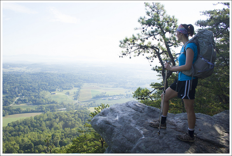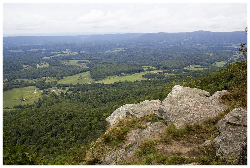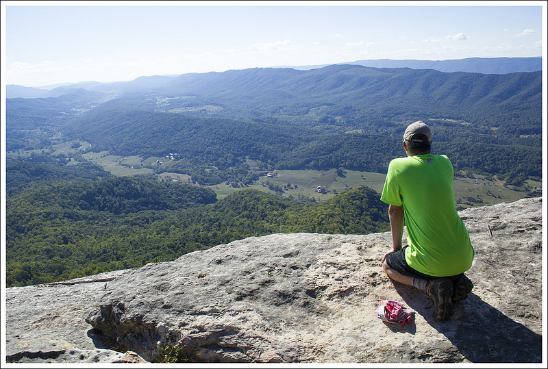 Views from the overlook are majestic and expansive. The long ridge on the the right carries the Appalachian Trail over to Tinker Cliffs. On a clear day, you’ll see the cliffs shimmering in the distance. When you’re at McAfee, don’t miss the opportunity to sit on the ledge with your feet dangling into the abyss. It’s a tradition and isn’t as scary as it looks.