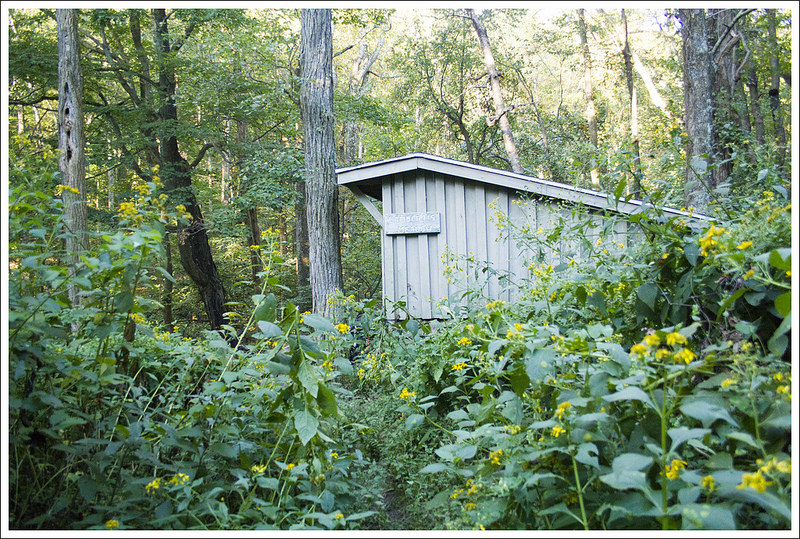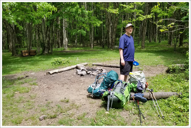 Pogo does not have a shelter or a bear pole/cables, but it has a privy, a water source, and tons of tent sites. None of the tent sites are particularly flat and there aren’t a lot of suitable trees for making a bear hang. We figured bigger groups would take the large areas close to the trail and the privy. Also, the privy at this site was especially foul, so we wanted to put a lot of distance between us and the smell. Our spot was at the upper reaches of the campsite and had a nice firepit with a bench. It was still a shabby site compared to the luxuries of Raven Rock, but we made do! Pogo was definitely my least favorite camp stop on the trip.