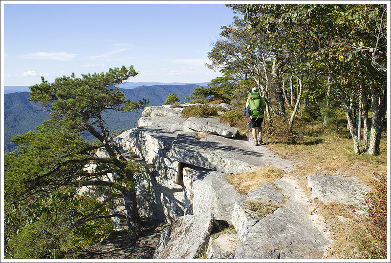 It was clear that many people had camped at the top of Tinker Cliffs, camping is strictly prohibited on top Tinker Cliffs. We made our way along the open cliffside for about half a mile before descending back into the trees.