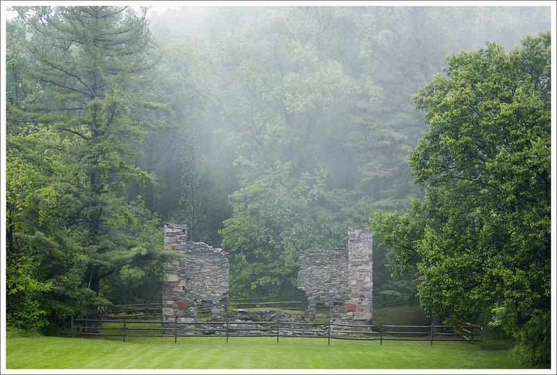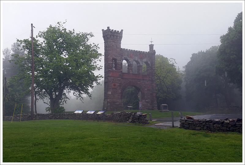 Hiking in the green, foggy forest was amazing! Below: More history at Gathland State Park; Hiking into the fog; Ed Garvey Shelter.