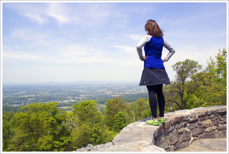 Around 2.2 miles, we reached a very steep section of rocks to traverse. At 2.8 miles, our climbing ended and we reached a junction where you can take a side trail that leads to High Rock. Knowing we could loop right back to the AT, it was an easy decision to check this out. In just a tenth of a mile, we came to a road and parking lot that led to the High Rock overlook. My first thought when approaching it was disgust from all the graffiti. However, this overlook is so covered in graffiti that it almost approaches art – clearly the idea of “take only pictures, leave only footprints” is alien to the people that contributed to this. The view from High Rock, which also serves as a hang gliding launch, was gorgeous and the scenery with the graffiti made for some interesting photos. We then put our packs back on and found the spur trail that joined back to the other side of the Appalachian Trail. In a tenth of a mile, we were back on the AT to continue our journey.