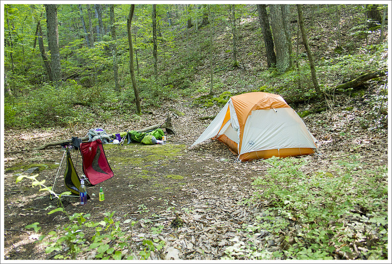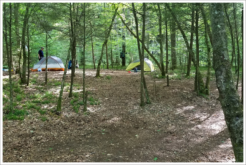 We made it to camp at Lamberts Meadow Shelter! Below: We set up camp on the opposite side of the stream; The lousy, dank water source.