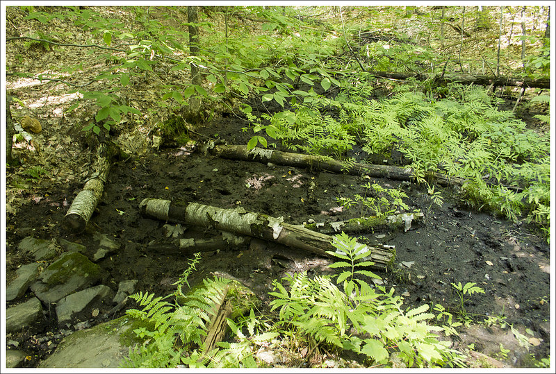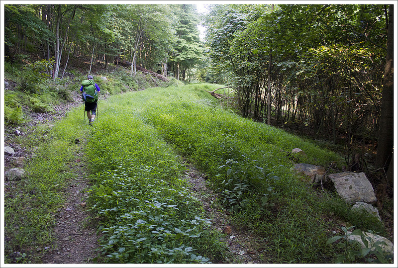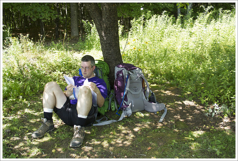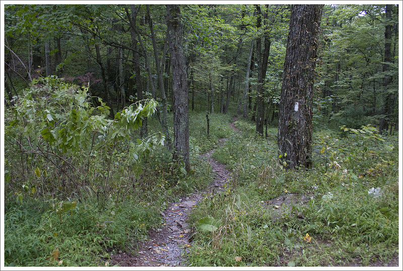 We continued along and passed the junctions with the Rocky Mountain Run Trail and Patterson Ridge Trail. When we reached the junction of the Big Run Portal and the Big Run Trail, we paused for a bit to gather some energy before the big climb up. This area used to have some established campsites, but these have been removed.
