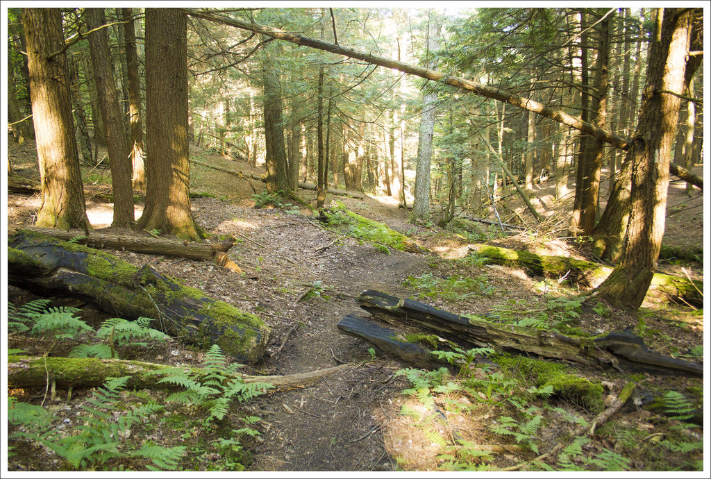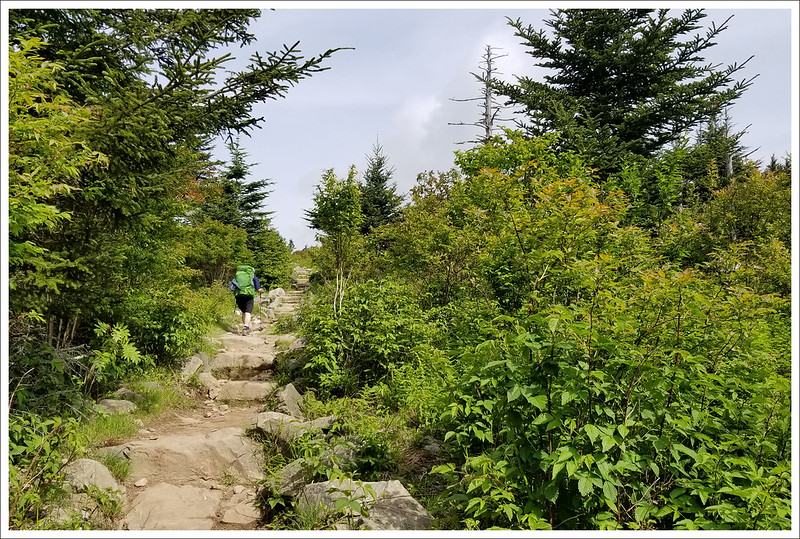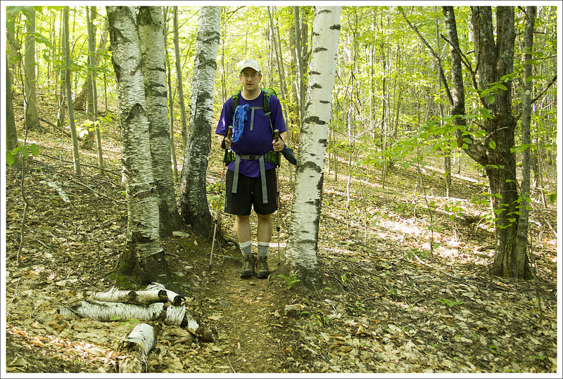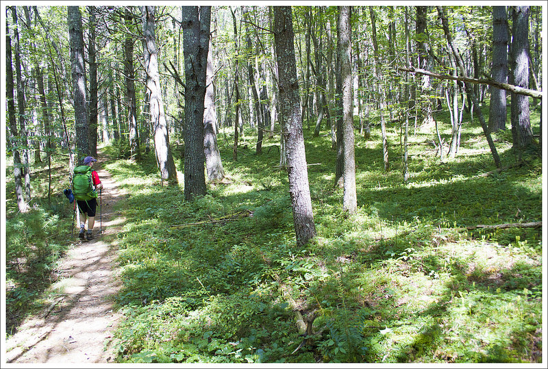 After descending for 2.2 miles, we came to another four-way junction with a campsite right next to a stream. There were already 4-5 guys there at the one spot that were setting up to camp, so we checked our water supply. Since we felt we had enough water to get us through the end of the hike and to cook with for dinner and breakfast, we decided to press on. The hike up from the creek was a very steep, narrow trail of .8 miles. With a full backpack, it made for slow work.