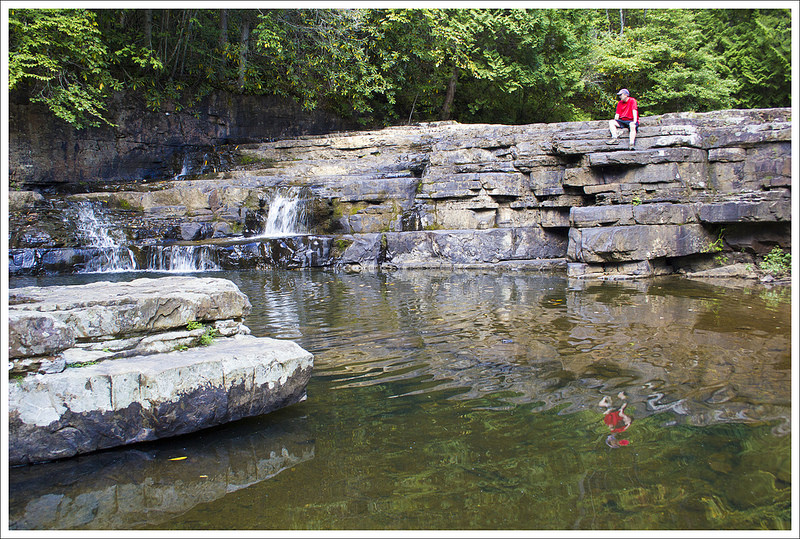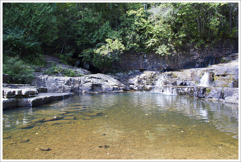 Start out from camp, following the yellow-blazed Big Run Portal trail upstream. There will be many stream crossings. Pay close attention to blazes, they’re sometimes hard to find and the trail gets hard to follow at stream crossings