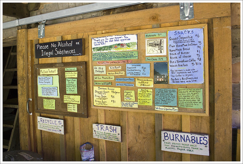 Ah… it was a deluge! Everyone who had camped at Dahlgren was awake and stirring before it was fully light. People were skipping their cooked breakfasts and packing gear as quickly as possible, in hopes of beating the impending rain. We stuffed our faces with peanut butter pie cookies and were packed and hiking before 7:00 a.m. We all decided to start with packcovers on and rain gear within easy reach. It was a good plan, because the downpour started before we’d even made it a mile out of camp. At .8 miles, we crossed Reno Monument Road. More appropriate to a nice, sunny day, there’s a homemade ice cream shop (South Mountain Creamery) just .2 miles east of the trail. I might be the world’s biggest ice cream fan, but even I don’t want it on a wet, windy, 48 degree day.