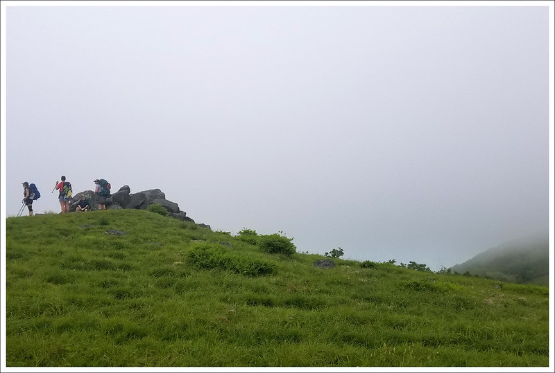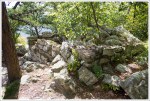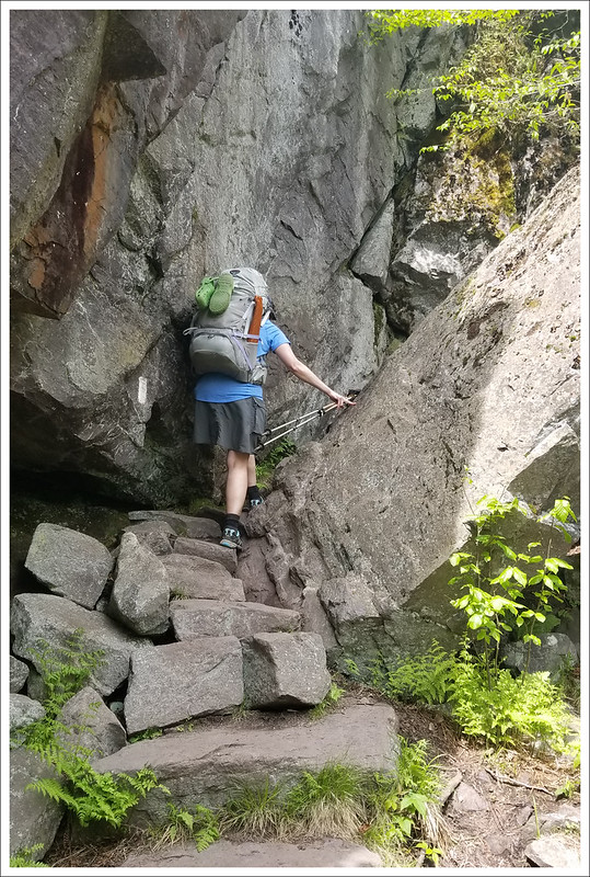One of the many pink lady’s slippers we saw along the trail. Below: Much of the day covered rocky terrain along a ridge; There were big rocks and little rocks; Our camp at Pogo Memorial.