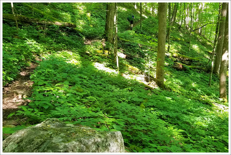 We set off early. The morning was already hot and humid. Below: This huge tree fell and injured two hikers the weekend before we hiked; A beautiful farmland view on day two; There was not a lot of climbing on day two, but the terrain was rockier.