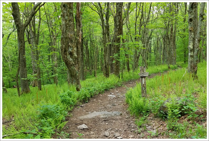 The climb up from here is brutal and relentless. Shortly after we started up this steep section of the Big Run Trail, a bear jumped off the trail and was booking it into the woods. The bear clearly had a lot more energy than we did and I’m sure my heavy-breathing up the trail had startled it. This uphill was quite a challenge for me, where my lack of hiking this year was showing. We paused for a bit at the four way junction.Taking a left here, we still had a little bit of climbing before getting back to the Appalachian Trail.