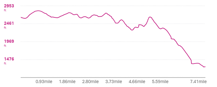 Elevation Change – 1780 ft. (1370′ on Day 1, 410′ on Day 2)