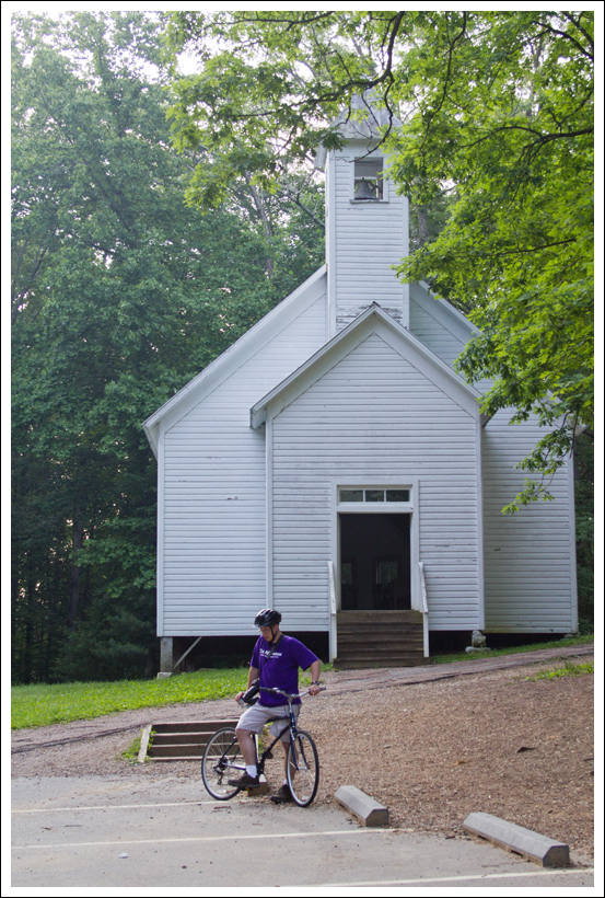 The one thing that surprised me about biking through Cades Cove was that some of the hills were actually pretty challenging. When you drive around the cove, it seems mostly flat or perhaps ‘rolling’. While none of the hills are long, there are a number that are quite steep and require some power-pedaling. The rental bike I used didn’t have quite as many gears as my normal bike, so that made things a bit tougher. We biked most of the hills without stopping or getting off, but there were two hills near the end where it just seemed more efficient to dismount and walk our bikes up the hill. When you can’t shift your gears anymore, and people are walking by while you valiantly pedal, it’s time to revisit your pride! Besides, it seems that the majority of people walk their bikes a little bit in Cades Cove, so I didn’t feel too bad.