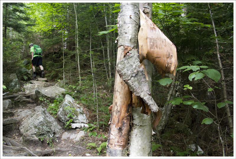 There were many beautiful birch trees on the climb. Below: The rocky, rooty climb continues; The junction for trails to the north and south summits.