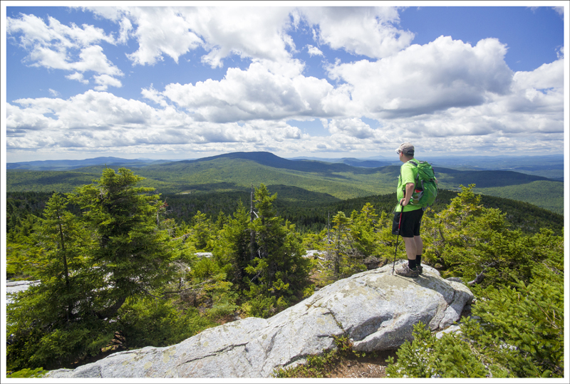 Christine Enjoys the North Summit of Mt. Cube – views look toward Upper Baker Pond and Mt. Moosilauke.