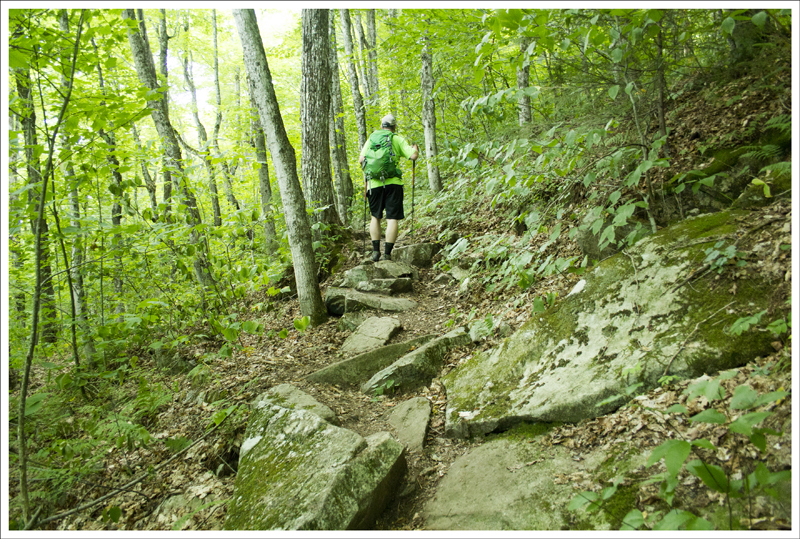 We continued along and passed the junctions with the Rocky Mountain Run Trail and Patterson Ridge Trail. When we reached the junction of the Big Run Portal and the Big Run Trail, we paused for a bit to gather some energy before the big climb up. This area used to have some established campsites, but these have been removed.