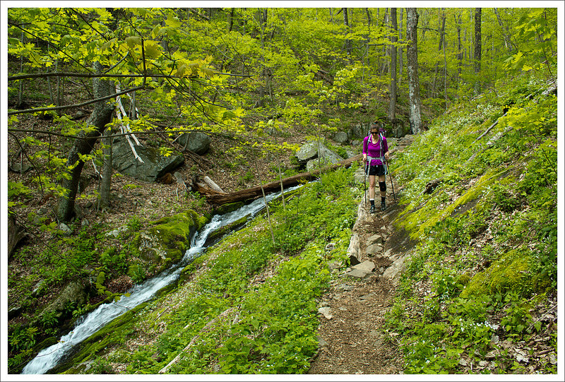 The turn onto the Tuscarora trail is marked with another national forest information board. There is also a nice bench at the junction – probably an Eagle Scout project! Turning onto the Tuscarora Trail, you’ll immediately cross Little Passage Creek. It was a very easy rock hop. From there the trail climbs uphill for a little less than a mile. This section was a bit steeper than what was required to reach Signal Knob, but still squarely moderate.