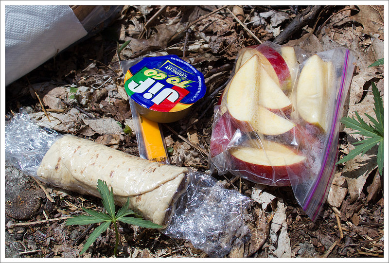 Along the ridge, we passed the other side of the Meneka Peak trail. Looking at how these trails interconnect is interesting and definitely opens up some longer loop options. At about 6.4 miles, the trail passed through a small grassy area and began to descend steadily. There really wasn’t anything remarkable about the rest of the hike. It was just a walk through the woods. We saw a big bird’s nest of some sort. We saw tons of ripening blueberries. We passed some boy scouts on a weekend backpacking trip. We passed the pink blazed Sidewinder trail at 8.1 miles. We crossed a stream. At around 9.5 miles we passed a spur trail to Elizabeth Furnace. At this point the blazes went back to orange.