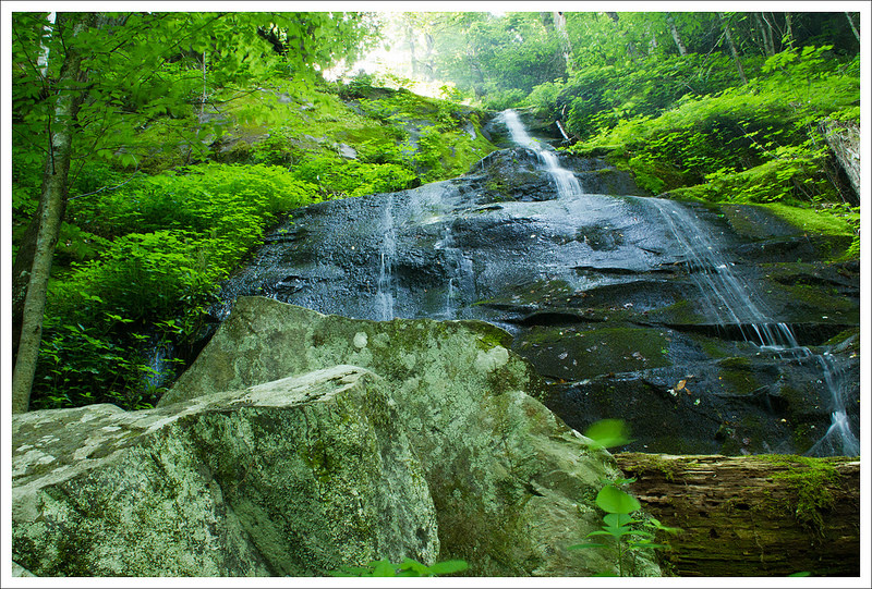 Christine mentioned that this was a “plan B” hike, but I thought I would elaborate on the “plan A”. We drove for about an hour along the Blue Ridge Parkway early in the morning to get started on our hike. However, there was heavy fog just about the entire drive up. We got to the trailhead and pulled the car over. I got out to try and find the trailhead, which was a challenge since at this point you could only see about ten feet in front of you. After we finally found the trailhead, we decided to see if we could wait a bit to see if the fog would lift. On some of these high elevations, the fog can blow over and clear out in a few minutes. So, we waited about an hour and there was no lifting. We knew we needed to do something else. The week that we were in North Carolina, we felt the weather was spotty and there were lots of low hanging clouds, so we ended up doing lots of lower elevation hikes to try and embrace what nature was allowing. So, we drove another hour and a half to get to a hike we hadn’t done yet.