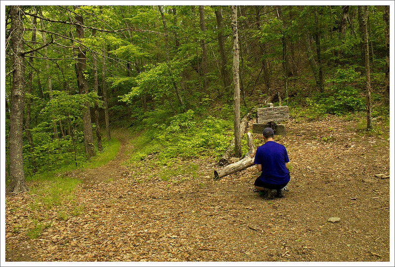 The trail began climbing pretty quickly and steadily, as it so often does when you leave a gap. At 1.5 miles into the hike, we passed the Big Branch Campsite on the right side of the trail. There was space for about four tents, a register log/box, a fire pit, and a water source. There are full shelters a few miles both north and south of the campsite, so I imagine the site is mostly in place to accommodate overflow during the busy thru-hiker season.