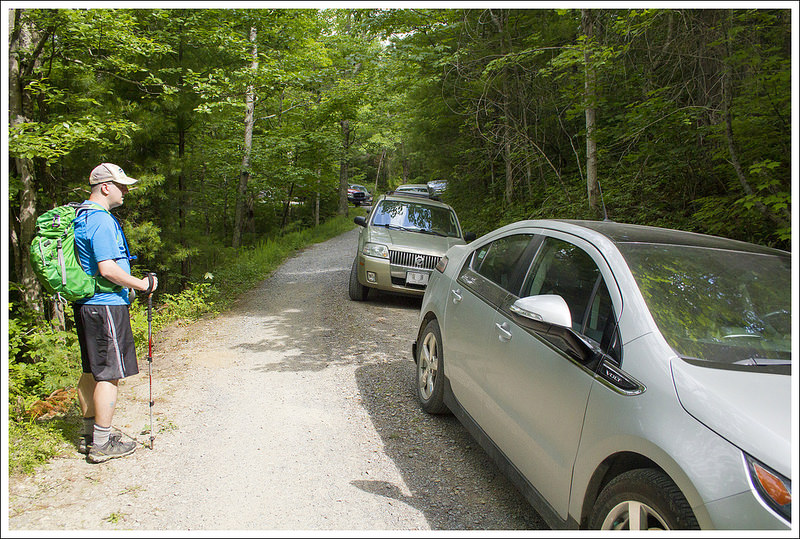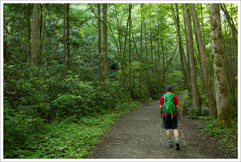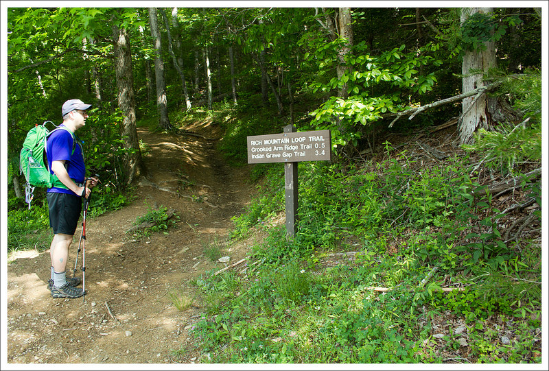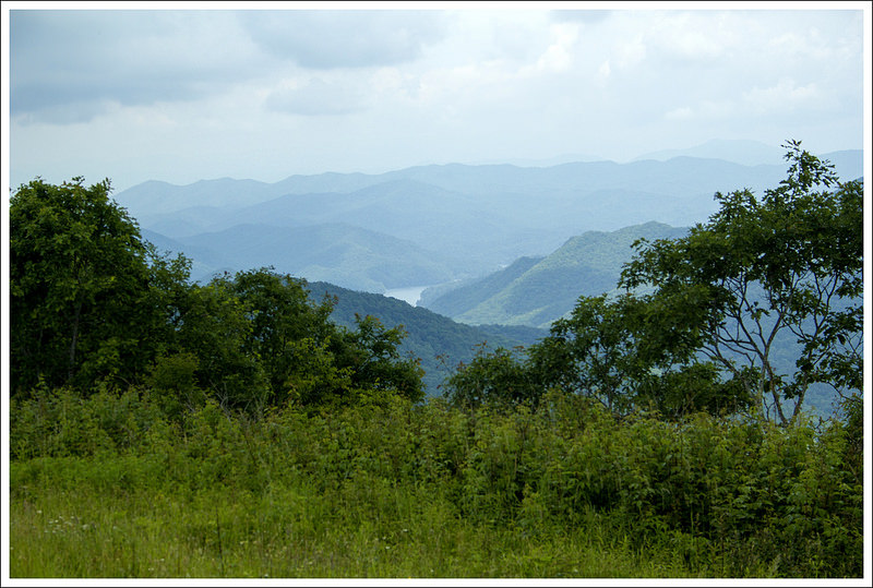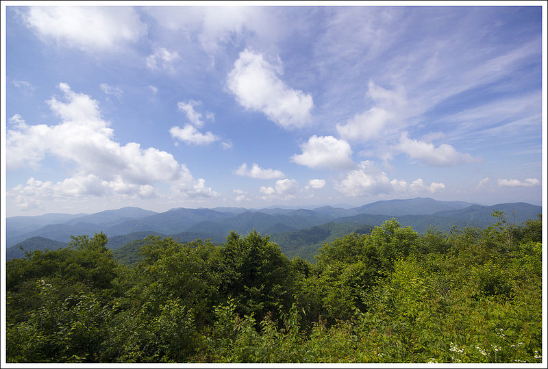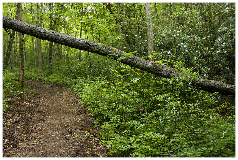 We initially planned to do the Blackrock Mountain hike at the southern end of the Blue Ridge Parkway, but unsettled weather forced us to find an alternative hike that stayed below the cloud shelf. We skimmed our hiking books and searched a few websites before settling on an Appalachian Trail section in Nantahala National Forest. The hike started at Tellico Gap, which is also the trailhead for the Wesser Bald hike. We parked our car and made our way south along the white-blazed Appalachian Trail.