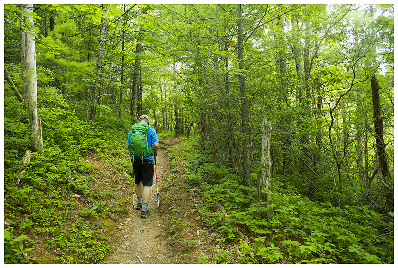 The next vista was another 1.2 miles south along the Appalachian Trail. It was all ridge walking, so the terrain was rolling and fairly easy without any big climbs or descents. Our guidebook called the next view Copper Ridge Bald. It wasn’t really a bald. It was just a rock jumble with a partly obstructed view. If you’re hiking for scenery, I’d probably suggest hiking to Rocky Bald and skipping the second view – it just wasn’t that impressive. We stopped at the second view and ate lunch and watched the clouds thicken. When we started to hear distant rumbles of thunder, we decided it was time to head back.