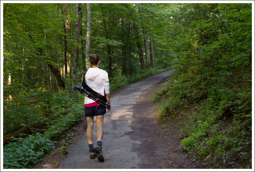 We decided our best bet to beat the weather was to start off early. We got up at 5:15 a.m. to make the hour-long drive from Bryson City over to Gatlinburg and the Roaring Forks Nature Loop area. The drive took about a half hour longer due to road construction near Newfound Gap.