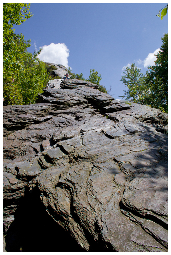 When we reached the fire tower, we could hear a couple people at the top of the tower. Christine quickly made her way up. I, on the other hand, needed to psych myself up. As you’ve probably seen in many pictures, I don’t mind getting out on rocks that are on the edge of a huge precipice; however, I don’t trust man-made structures when it comes to heights. I trust nature over man. I went up halfway and then I could start to see the sky through the gaps in the stairs and I just turned back around. But from the bottom, I could hear Christine and the others at the top of how beautiful everything was and I knew I needed to force myself to get up there. So, I took a second attempt and made it up. Christine and the others at the top applauded my efforts for overcoming my fear. I’m so glad I made it to the top, because the scenery was breathtaking and some of the best mountain views I’ve ever seen. We stayed up there a while and talked to a few different groups of people that made it up after we did.