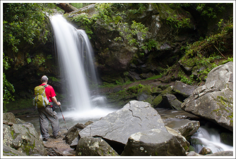 We started hiking around 8:15 and quickly covered the short distance to Grotto Falls. We had the falls all to ourselves, so we enjoyed taking a few photos and climbing around on the rocks around the falls. For this Smokies trip, I invested in a Joby Gorillapod. I’ve been super-impressed with its stability and weightlessness. It’s great to have a functional tripod that doesn’t even weigh a pound!