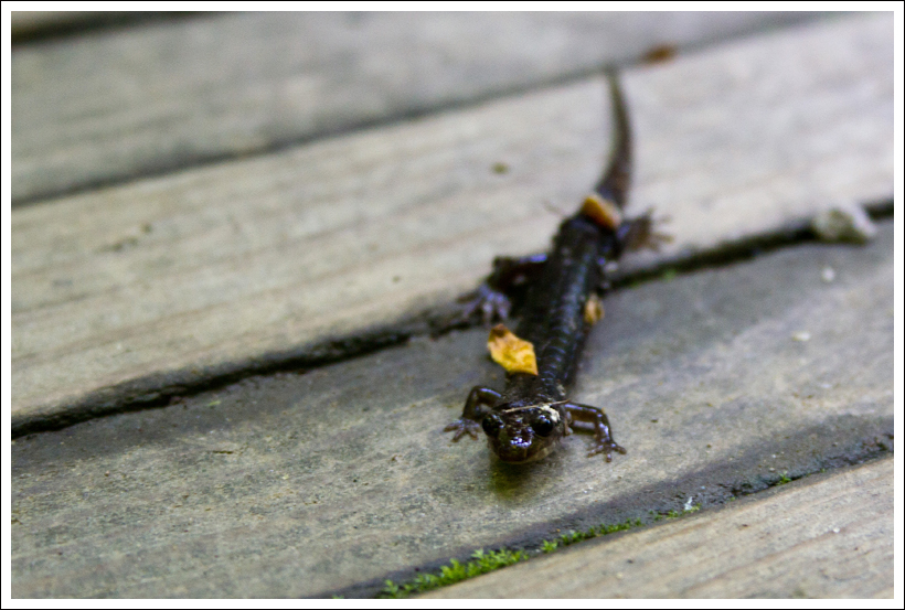Shortly after the waterfall, we came to the junction with the Cucumber Gap Trail. Adam mentioned meeting the woman who passed along the bear warning. What I didn’t know at the time was that the only fatal bear attack in the Smokies happened close to this spot. I have a healthy respect for bears, but I’m not frightened of encountering them on the trail. Fatal encounters are rare and tragic. In the end, all we saw were lots of big snails, squirrels, and a couple pileated woodpeckers.