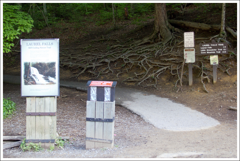 Directions to trailhead: Past the Sugarlands Visitor Center, take the Little River Road for 3.5 miles until you see signs for the falls. Parking was available on both sides of the road.