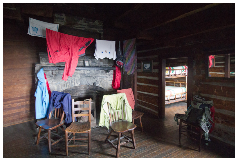 Adam decided to go back over to the main lodge to poke around and I decided to change into dry clothes and take a nap. I was really glad I had packed long pants and a fleece to wear at night. Top of the mountain temperatures at night ranged around 45-50 degrees, so it was nice to be cozy and dry. Our room had a set of queen-sized bunk beds, a chair and a small table. A kerosene lamp was provided for light, but even when it was lit, we still needed headlamps to see well. Our bunkhouse was made up of three private rooms surround a common area. LeConte has a couple bunkhouses like this in addition to the smaller cabins that house just a single party of hikers.