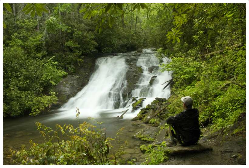 We stopped several times to enjoy and photograph the beautiful Little River. The water here tumbles over boulders and rock shelves, making many small cascades and rapids. The day was sunny and cloudless, so it was hard to take decent pictures. I did manage to find a few shady spots that were nice for photos. At one particular spot, I set up my tripod and sent Adam out to sit on a rock. He noticed a brown snake, sitting half in and half out of the water. I tried to get a photo, but as soon as I pointed my lens in his direction, the snake ducked into the water. It popped its head up one last time before diving deeper and disappearing for good. I did a little research on what kind of snake he might have been and came up with a common brown water snake.