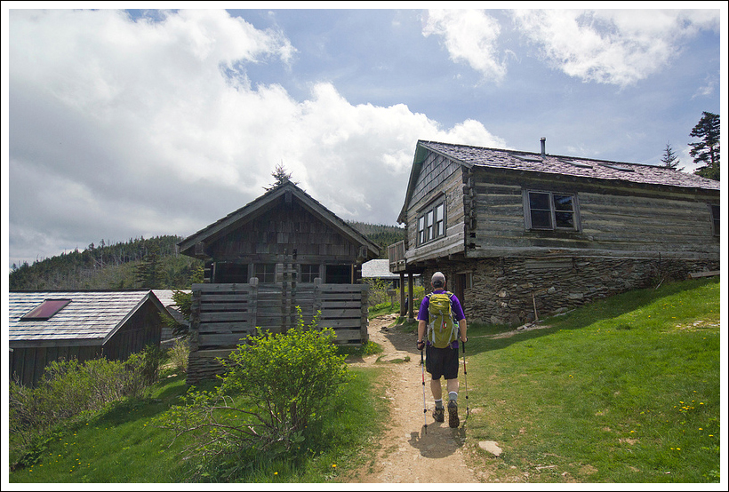 At 2.7 miles, you will rock-hop across Huskey Branch. The trail continues to ascend, but slightly more steeply until you reach the top of Cucumber Gap at mile 3.8. Off to the right, you may have an obstructed view of Burnt Mountain and the Bear Wallow Creek valley below. Near the top of the gap, you may see Fraser magnolias, often referred as “cucumber trees”, giving this trail its name. The trail descends at this point and crosses Tulip Branch at 4.4 miles. At 4.8 miles, the Cucumber Gap Trail ends and you willl take a right when you reach this junction with the Jakes Creek Trail. At 5.1 miles, the trail reaches another junction. Head right again at this fork. Soon, you will pass by more abandoned Elkmont houses until the trail opens up into the larger area of homes known as “Daisy Town”. Walking down the main street, you will reach the Appalachian Club, which has a large wooden porch and some historical signs that you can read to learn more about this area. From the club, make your way to the right and you should shortly reach your car again.