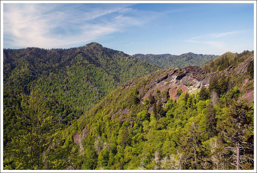 This ten-mile hike follows the Appalachian Trail along the Tennessee-North Carolina border. Most of the hike is above a mile high, so in open spots you get some very impressive views of the Smokies. The bald itself is rather disappointing, as it’s been mostly reclaimed by the forest, but we did enjoy the vistas and visiting two Appalachian Trail shelters.