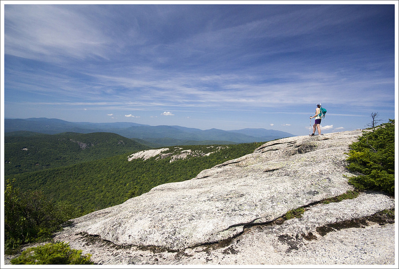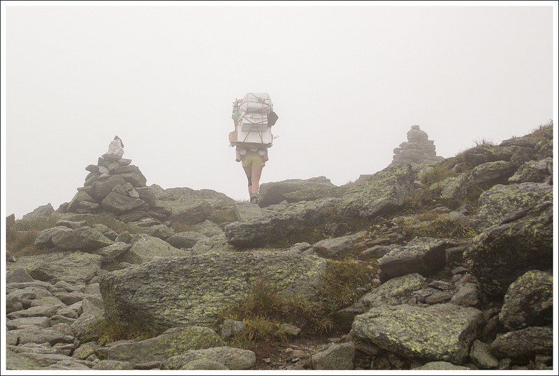 The last tenth of a mile before the junction with the Crawford Path was a jumble of football-sized rocks along an exposed cliffside. When it’s wet, a stream flows over these rocks, but on this day it was thankfully bone dry. In the winter, this particular spot is known for being treacherously icy and windy. I’m glad we only visit New Hampshire in the summer. Virginia winters are tough enough for me!