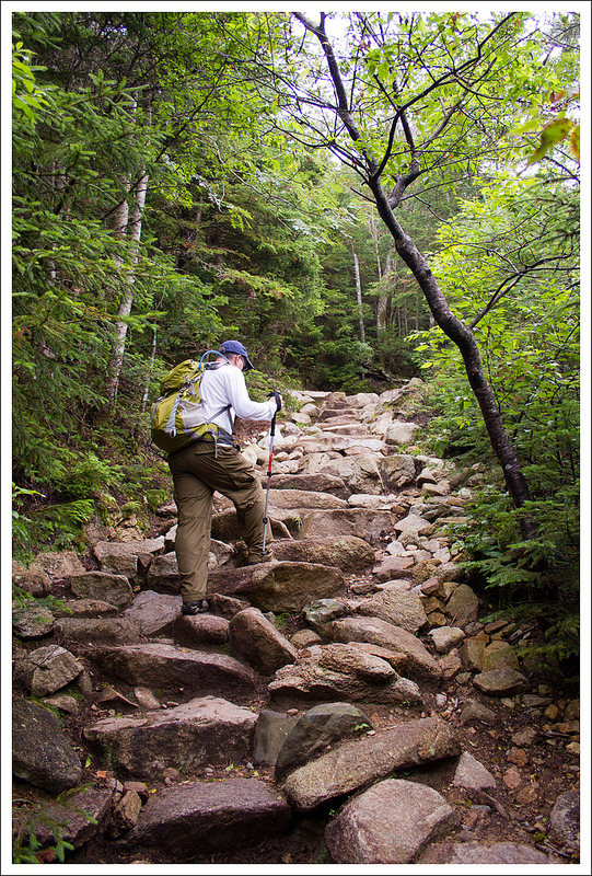 As Adam said in his post, the Valley Way trail is pretty moderate for White Mountain terrain. The trail is not as rocky and stays under the shelter of trees until you get to Madison Spring Hut. It’s a great choice if you want to visit the northern Presidentials, but stay largely sheltered from wind and other weather. There is still plenty of climbing, but until the last mile, it’s all gradual and moderate. Trails like the Valley Way exist due in part to people like J. Rayner Edmands. He was an early volunteer for the Appalachian Mountain Club. Starting in the 1880’s, he spent over 20 summers building trails in the White Mountains. He believed trails to the high peaks should be passable without stumbles, even in the dark. Backpacker Magazine did a neat article about Edmands in their October 2014 issue. Check it out if you have a few free minutes.