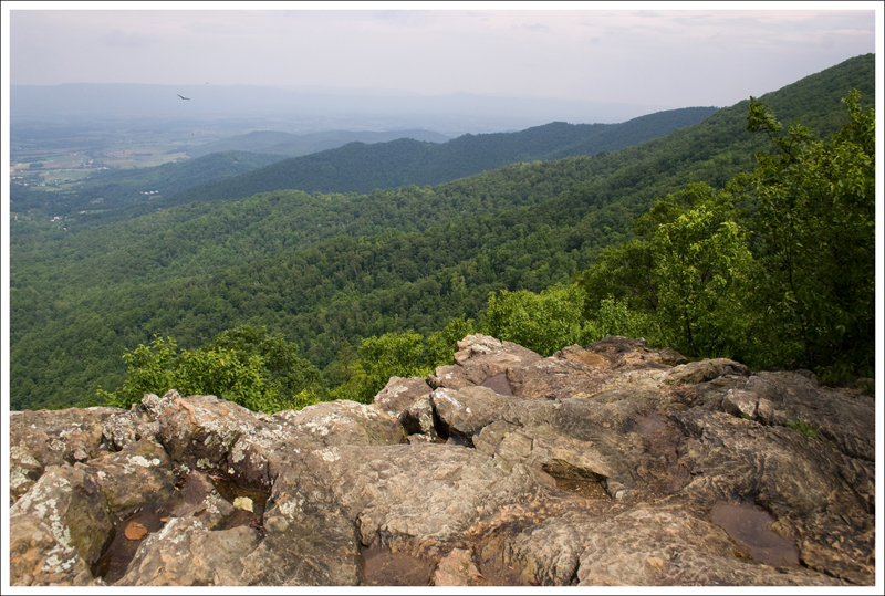 We eventually came to a four-way trail junction at the top of the ridge. The remainder of the hike followed the Big Run Loop trail until it joined the Appalachian Trail. The last segment along the AT took us past some impressive granite cliffs and crossed the Doyles River Overlook on Skyline Drive. After about a mile and a half along the AT, we completed the loop and returned to our car.