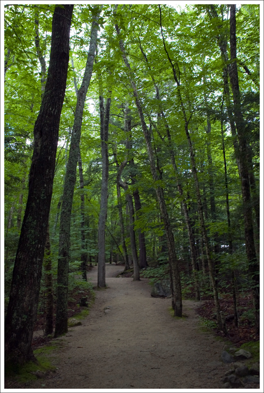 The trail followed alongside Cascade Brook for a half mile. There were many little side-trails leading to scenic spots along the brook. Dozens of people reclined on the rocks while kids used the streambed like a natural waterslide. One mother remarked to us that her family had visited the spot two days in a row, and both her boys had worn through the backsides of two sets of swim trunks.