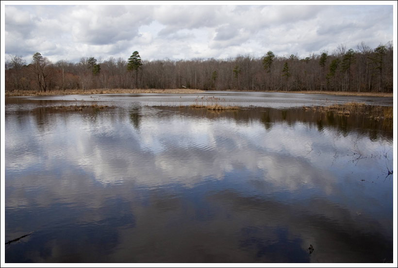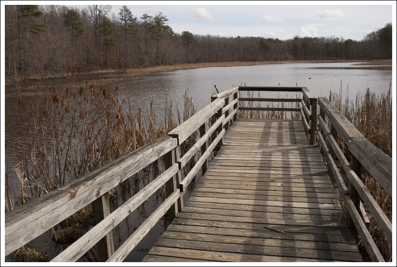 Directions to trailhead: From Route 10/Iron Bridge Road in Chester, VA turn on to Beach Road/State Route 655 (near shopping center). Continue on this road following the signs for Pocahontas State Park. Enter the main entrance on State Park Road. Pay the parking fee ($5 on weekends) and park at the nature center. You should be able to start seeing signs from the parking lot to the Beaver Lake Trail.