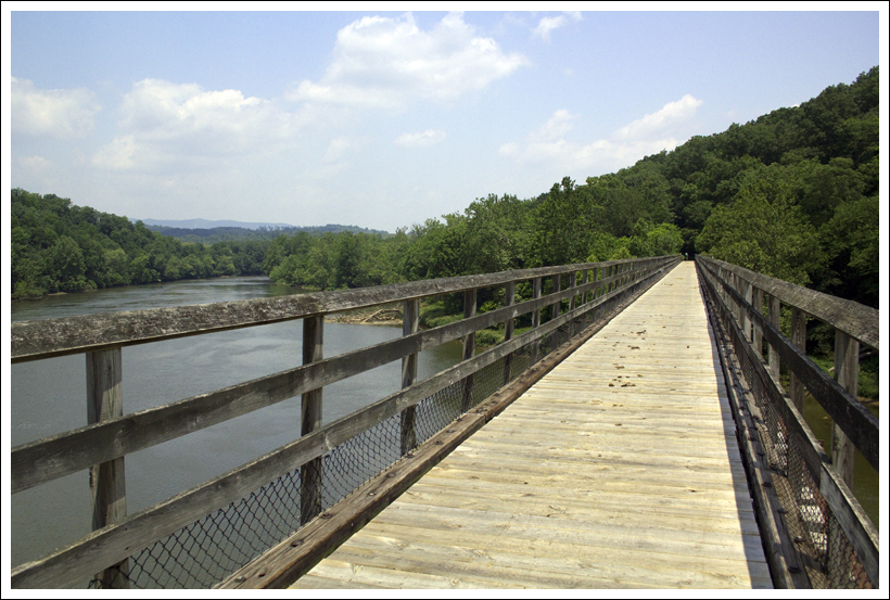Biking Across the Fries Junction Bridge. Below: A variety of scenery along the trail.